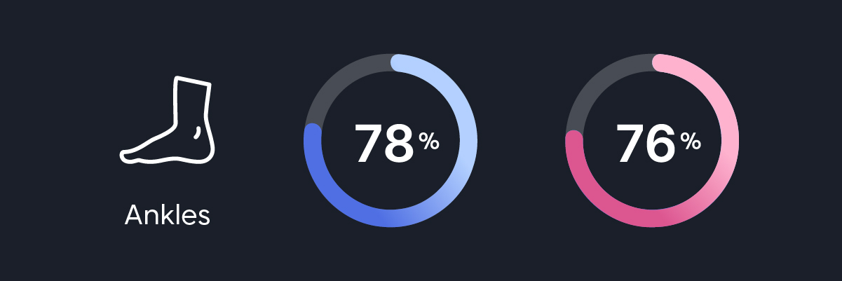 Ankle mobility is the only body zone where men scored above women, at 78% VS 76%.